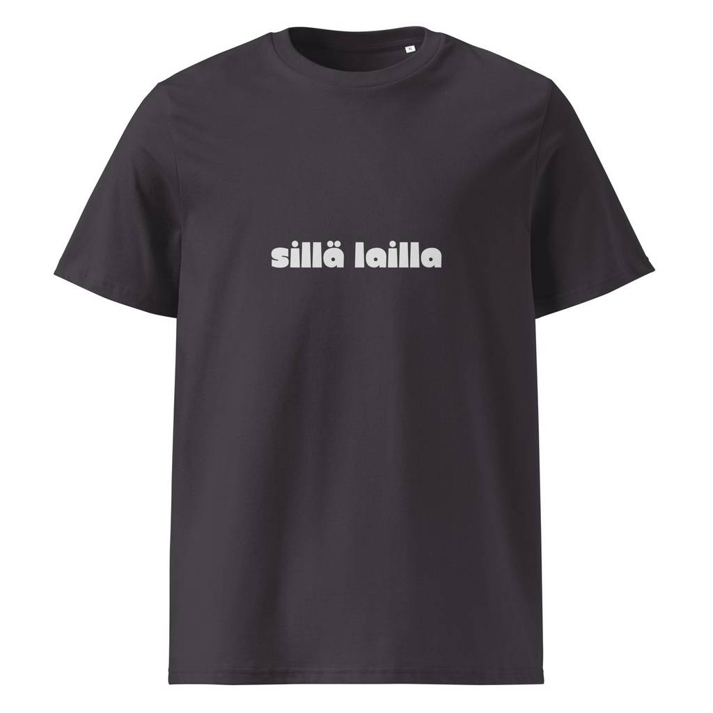 Yksikertaisen ja tutun tokaisun omaava t-paita, joka sopii naisille ja miehille. T-paidassa painatuksena teksti ”sillä lailla” siistillä kirjasintyylillä paidan etupuolella. Paitaa saatavilla useissa väreissä, koot S-2XL, malli on medium fit. Paita sopii siis lähes kaikille.