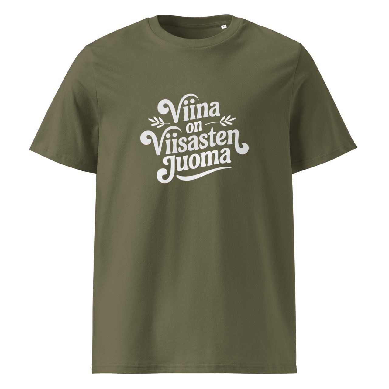 Tämä t-paita tunnetulla vanhalla sanonnalla on toimiva valinta itselle tai lahjaksi alan ammattilaiselle. Luomupuuvillainen unisex-mallin laadukas printti t-paita, joka sopii naisille ja miehille. T-paidassa printtauksena ”Viina on viisasten juoma” paidan etupuolella. Tämä t-paita on luontoystävällisempi valinta, koska kangas on 100 % luomupuuvillaa. Lisäksi vahva rakenne ja laadukas materiaali tekevät t-paidasta kestävän ja pitkäikäisen. Saatavilla eri väreissä, koot S-2XL, kaikissa sama painatus.